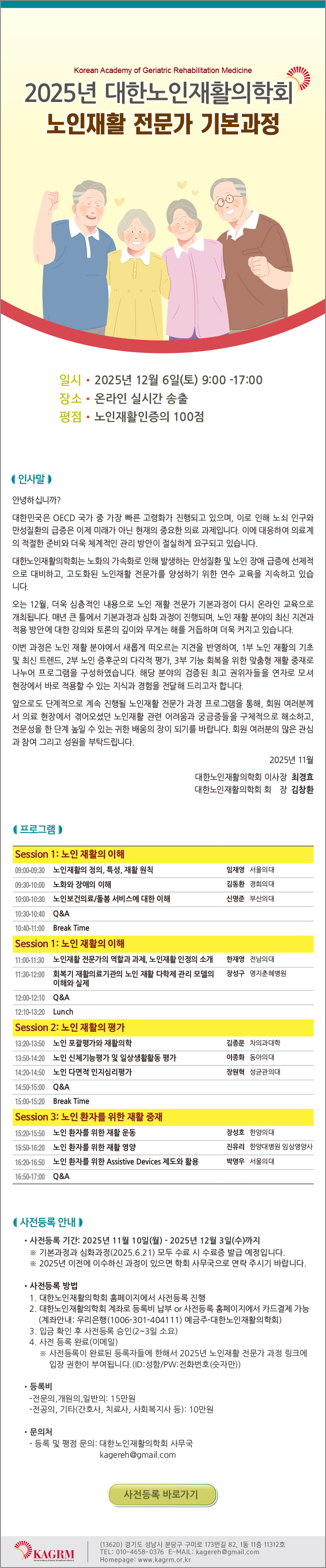 2025년 대한노인재활의학회 노인재활 전문가 기본과정 안내