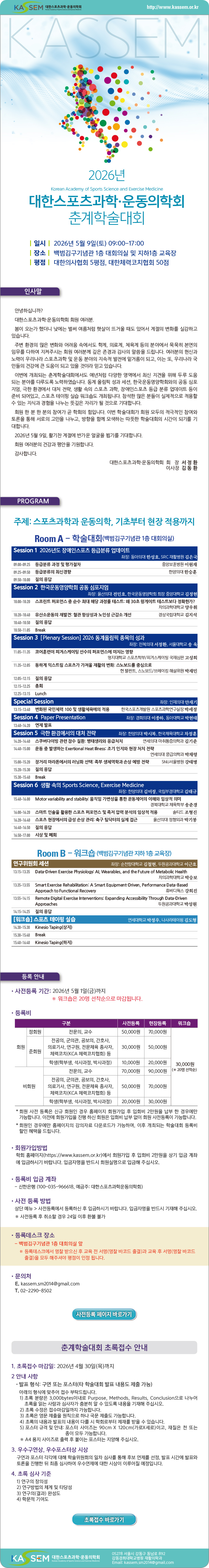 [대한스포츠과학운동의학회] 2026년 춘계학술대회 안내